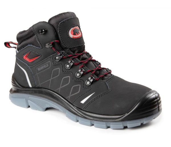 Obuwie ochronne Bearfield K14 w klasie S3 wykonane z grubej nubukowej skóry o podwyższonej wodoodporności. Kompozytowy podnosek, kevlarowa wkładka antyprzebiciowa i podeszwa PU/TPU, która nie traci swojej elastyczności na mrozie. Obuwie dostępne również w wersji ocieplanej sztucznym futrem.